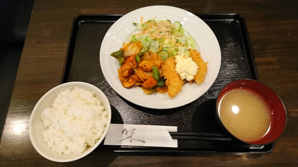 03/26 酢豚、白身魚フライ(珈琲付¥850-)