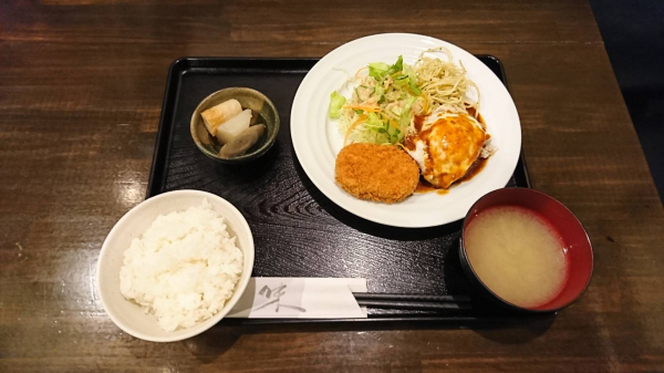 04/13 デミ玉ハンバーグ、カレーコロッケ(珈琲付¥850-)
