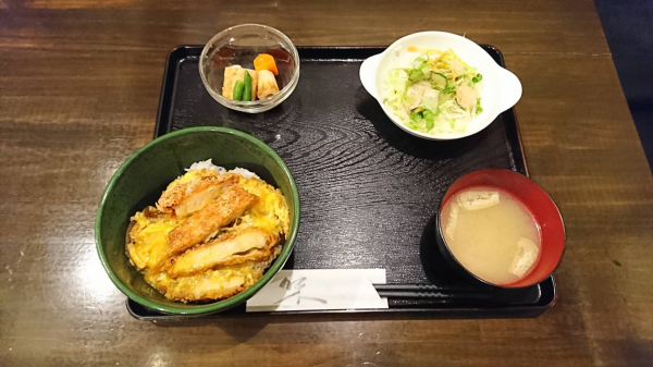 04/22 カツ丼、サラダ、味噌汁、小鉢(珈琲付¥850-)