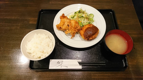 04/27 ツナとコーンのコロッケ、ホタテ風味の塩唐揚げ(珈琲付¥850-)