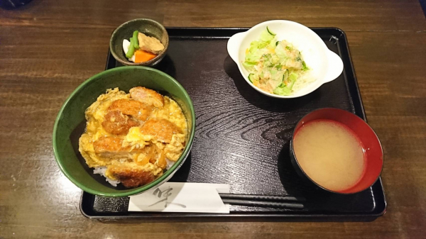 04/30 ヒレカツ丼、サラダ、味噌汁、小鉢(珈琲付¥850-)