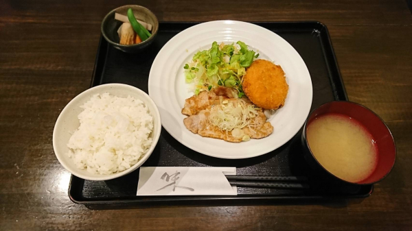 05/09 豚ロース肉の生姜焼き、カニクリームコロッケ(珈琲付¥850-)
