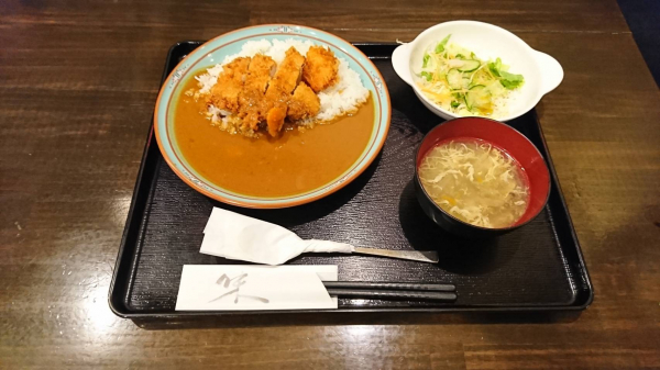 05/11チキンカツカレー、サラダ、玉子スープ (珈琲付¥850-)