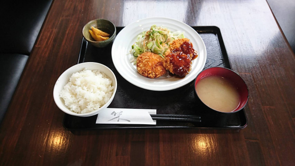 04/11 鶏の梅しそ巻きフライ、ハムカツ(珈琲付¥900-)