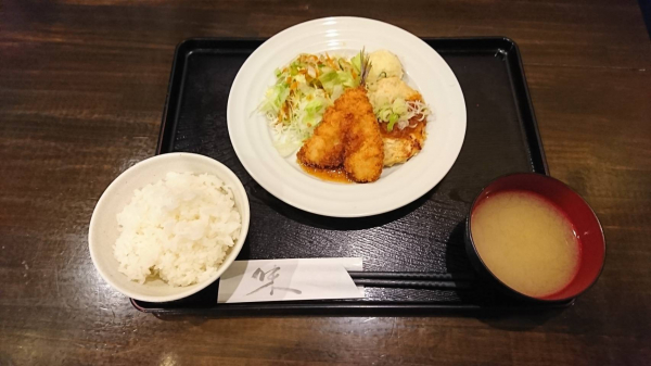 06/05 鶏ミンチと豆腐のおろしハンバーグ、アジフライ(珈琲付¥850-)