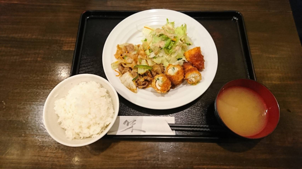 07/04 スタミナ焼き、ささみの梅しそポテト巻きフライ(珈琲付¥850-)