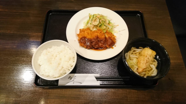 07/18 チキンカツ、ちくわの天ぷらのせミニうどん(珈琲付¥850-)