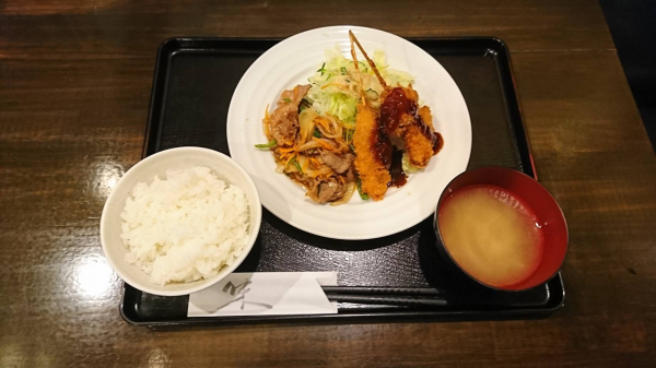 07/27 牛スライスの焼き肉、串カツ(豚肉、玉ねぎ)(珈琲付¥850-)