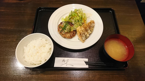 09/19 おろしハンバーグ、カレー風味の鯖の竜田揚げ(珈琲付¥850-)