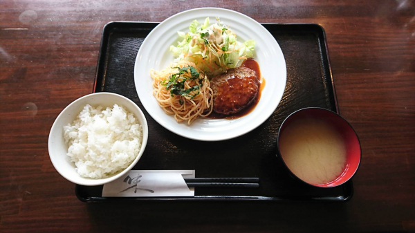 09/30 デミソースハンバーグ、明太子スパゲティ(珈琲付¥850-)