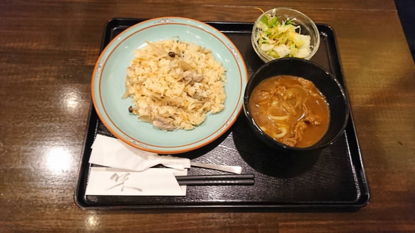 10/03 鶏ごぼうピラフ、カレーうどん(珈琲付¥850-)