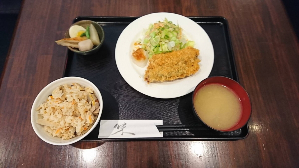 10/30 きのこの炊き込みご飯、アジフライ(珈琲付¥850-)