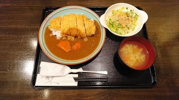 11/25 カツカレー、サラダ、玉子スープ(珈琲付¥850-)