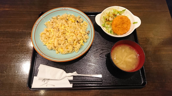 04/25 天津飯、大葉巻きアジフライ(珈琲付¥900-)