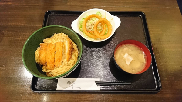 11/29 カツ丼、オニオンリングフライ、豚汁(珈琲付¥850-)