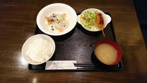 12/05 白身魚のクリーム煮、豚肉の串カツ(珈琲付¥850-)