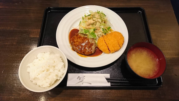 12/07 デミソースハンバーグ、ハムカツ(珈琲付¥850-)