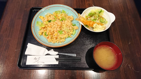 12/19 鮭レタスチャーハン、エビフライ(珈琲付¥850-)