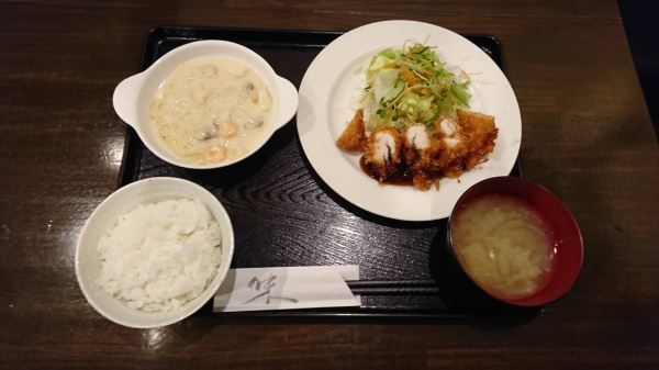 04/28 ヒレカツ、鶏の梅しそ巻きフライ(珈琲付¥900-)