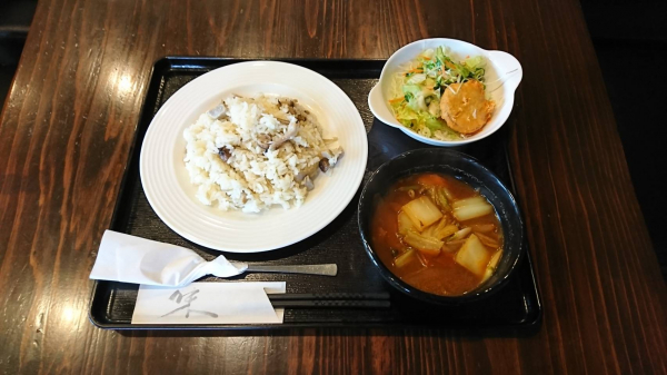 01/22 鶏ごぼうしめじピラフ、エビ味噌野菜ラーメン(珈琲付¥850-)